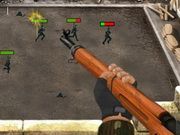 Shoot your enemies from the roof of a building, earn points to upgrade your weapons and military grade.